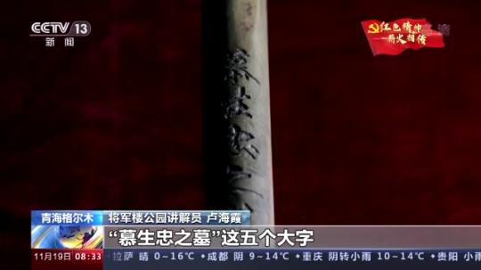 青海省格爾木市將軍(jun) 樓公園講解員 盧海霞:慕生忠將軍(jun) 在修建青藏公路的同時,他將自己的生死置之度外,所以在自己的鐵鍬上刻了慕生忠之墓這5個(ge) 大字。他當時在刻這個(ge) 字的時候,他就說路修到哪裏,如果我犧牲了,那麽(me) 就把我埋在哪裏,它就是我的墓碑。