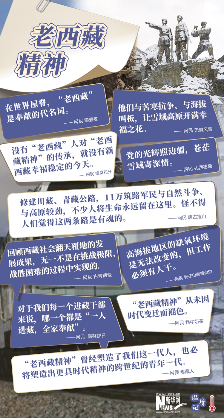 此後的幾十年間,一批又一批、一代又一代援藏幹部、駐藏官兵踏上世界屋脊,紮根雪域高原,和當地群眾(zhong) 一道,推動西藏各項事業(ye) 又快又好發展,讓千年雪域高原變了樣,也賦予“老西藏精神”更為(wei) 豐(feng) 富的時代內(nei) 涵。“生命在這裏很脆弱,生命在這裏也很頑強。”網民們(men) 在社交平台上表達對雪域高原心向往之的同時,更不忘歌頌曆久彌新的“老西藏精神”。曆經時代的變遷,這種精神正在感召並鼓舞更多人,紮根邊疆,造福西藏,讓那裏的山水永遠碧藍、綺麗(li) ,讓那裏的土地永遠充滿希望、幸福花開。(文字:徐可 海報設計:王曄)