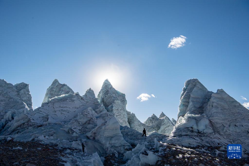 普瑪江塘邊境派出所移民管理警察巡邏路線上的崗布冰川(11月21日攝,無人機照片)。新華社記者 孫非 攝