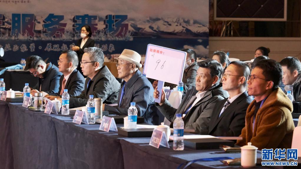 11月23日,第三屆拉薩旅遊行業(ye) 服務技能大賽中評委為(wei) 參賽選手打分。 新華網 貢桑央吉(實習(xi) 生) 攝