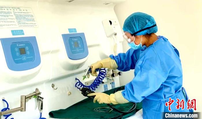 圖為(wei) 醫生清洗設備。西藏康城腫瘤醫院供圖