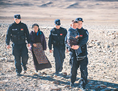 普瑪江塘邊境派出所坐落於(yu) 此,派出所的移民管理警察守護著轄區內(nei) 的祖國領土。民警們(men) 常在中國和不丹的邊境地區巡邏,那裏冰川密布,碎石路下往往暗藏冰裂縫。巡邏途中,民警們(men) 會(hui) 熱心幫助前來求助的牧民群眾(zhong) 。“鄉(xiang) 親(qin) 們(men) 有困難總是會(hui) 想到我們(men) 。”民警阿旺平措說。