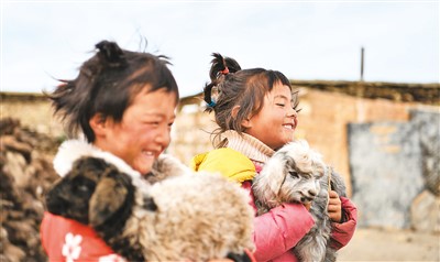 普瑪江塘鄉(xiang) 的孩子懷抱羊羔。新華社記者 晉美多吉攝