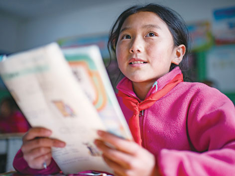 陳塘鎮小學三年級學生旺姆在讀課文(11月24日攝)。 普布紮西、格桑邊覺、孫瑞博攝
