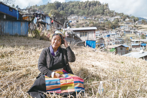 陳塘鎮的夏爾巴婦女在村頭開心聊天(11月24日攝)。普布紮西、格桑邊覺、孫瑞博攝