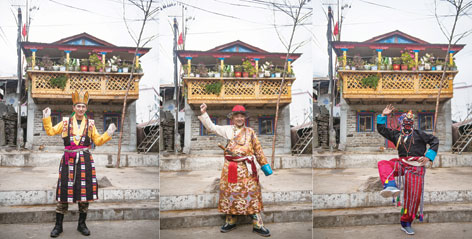 陳塘鎮藏戲演員在展示表演動作(11月25日攝)。普布紮西、格桑邊覺、孫瑞博攝