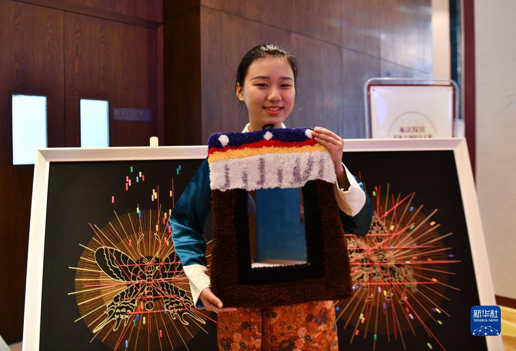 12月11日,一名工作人員在展示選手的參賽作品。新華社記者 晉美多吉 攝