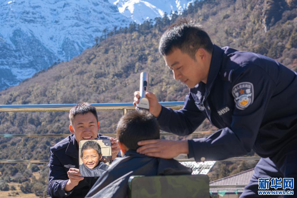 圖為(wei) 民警為(wei) 轄區兒(er) 童免費理發(12月12日攝)。新華社發 (晴雯、彭維熙、劉戀報道)