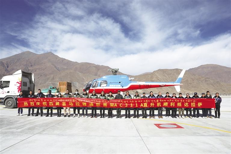 喜迎西藏首架國產(chan) AC311A直升機。圖由西藏喜馬拉雅通用航空有限公司提供