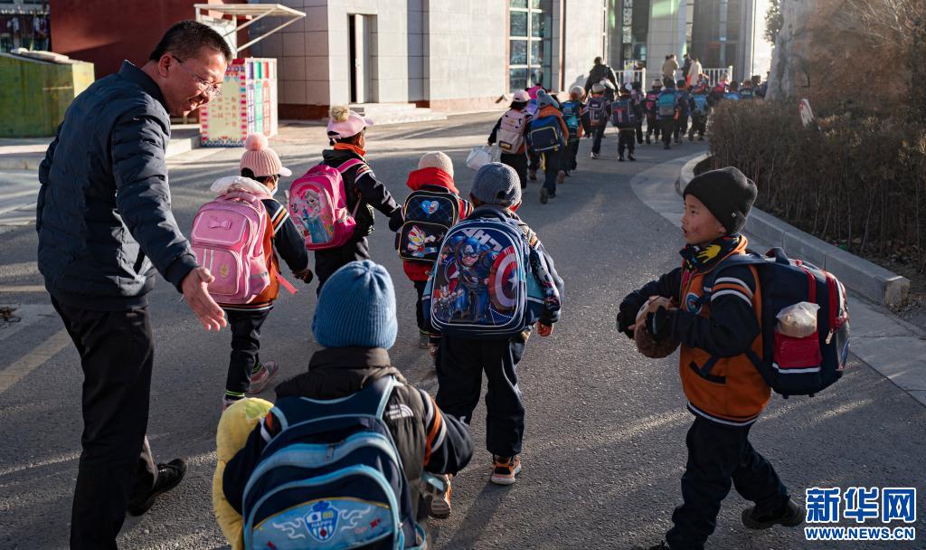 援藏教師潘傑和藏族學生在一起(12月12日攝)。