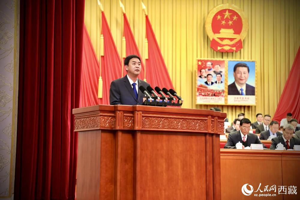 上午10時,大會(hui) 開幕,會(hui) 場內(nei) 全體(ti) 起立,雄壯、嘹亮的國歌聲響徹會(hui) 場。西藏自治區黨(dang) 委副書(shu) 記、西藏自治區代理主席嚴(yan) 金海代表西藏自治區人民政府向大會(hui) 作政府工作報告。