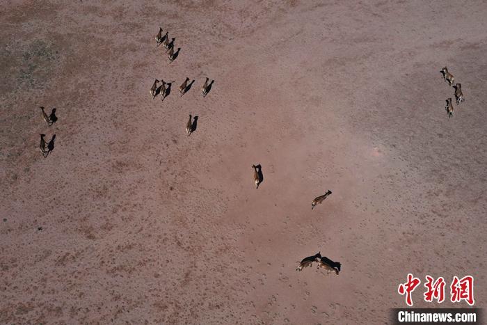資料圖為(wei) 西藏自治區那曲市雙湖縣境內(nei) 的藏野驢。(無人機照片) 中新社記者 貢嘎來鬆 攝