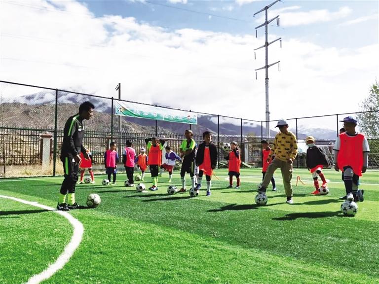 孩子們(men) 正在上足球課。圖由拉薩市青少年實踐基地提供