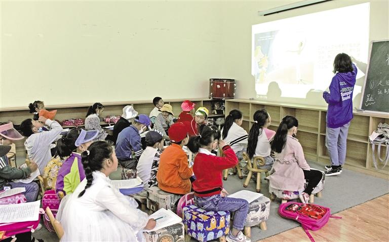 除了學習(xi) 藏戲的教室外,其他教室內(nei) ,老師們(men) 在給孩子們(men) 上著各種興(xing) 趣課,一顆顆夢想的小種子正在悄悄種下、發芽。