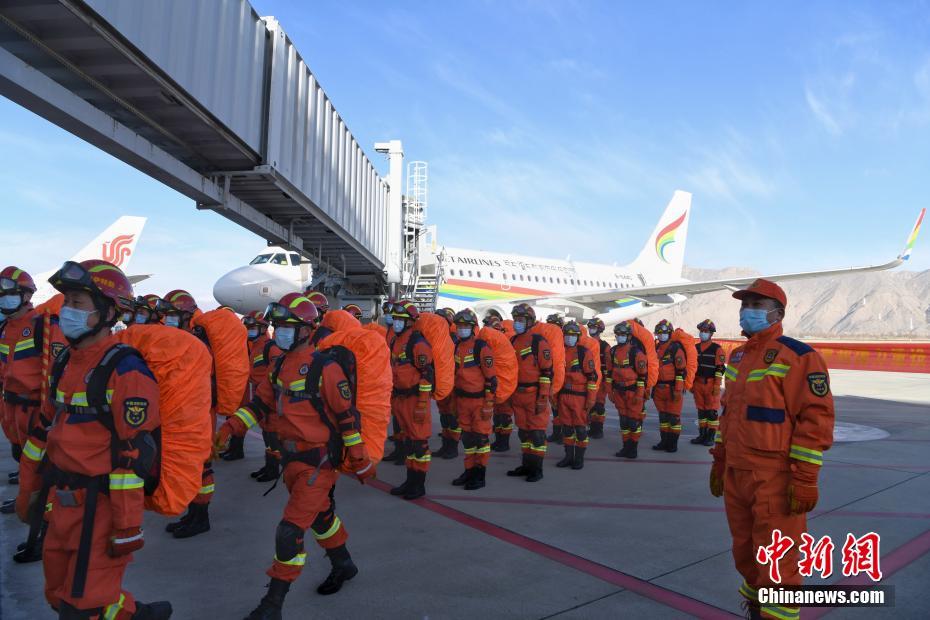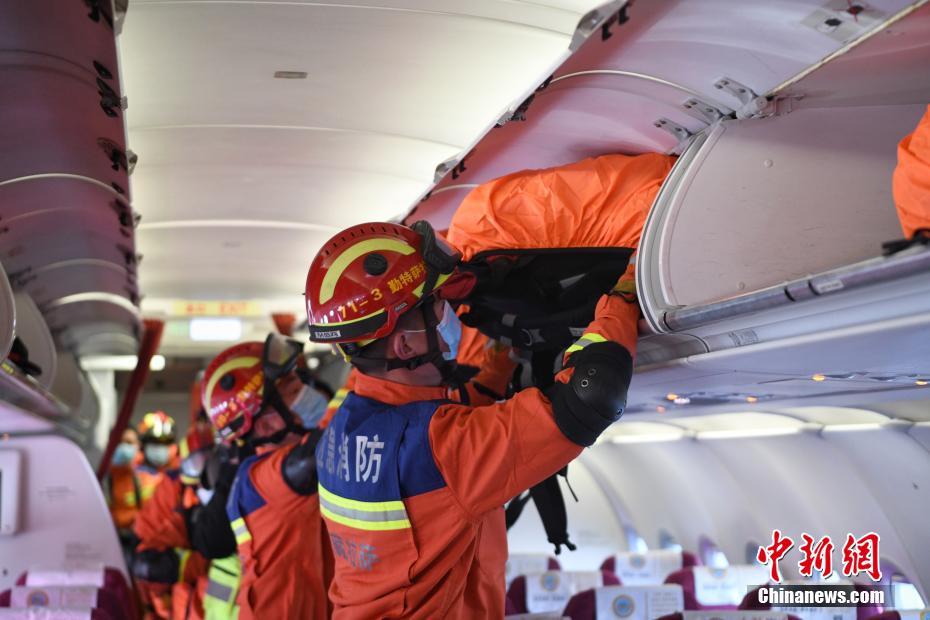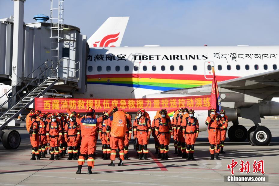 1月20日,西藏自治區消防總隊在拉薩貢嘎國際機場開展2022年跨區域地震災害應急救援力量投送拉動演練。據悉,演練投送的裝備主要為(wei) 個(ge) 人72小時保障物資、通信器材和輕便型的相關(guan) 救援器材。 中新社記者 貢嘎來鬆 攝