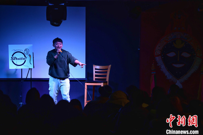 圖為(wei) “秀噠”脫口秀的發起人念增紮巴表演脫口秀。“秀噠”是西藏首個(ge) 藏語脫口秀團隊,目前成員均為(wei) “00後”。 中新社記者 貢嘎來鬆 攝