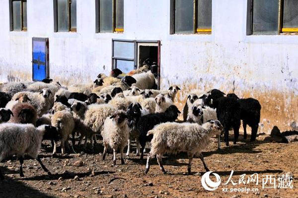 合作社裏的藏細綿羊。人民網 李海霞攝
