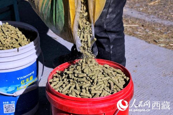 生產(chan) 出來的顆粒飼草。人民網 李海霞攝