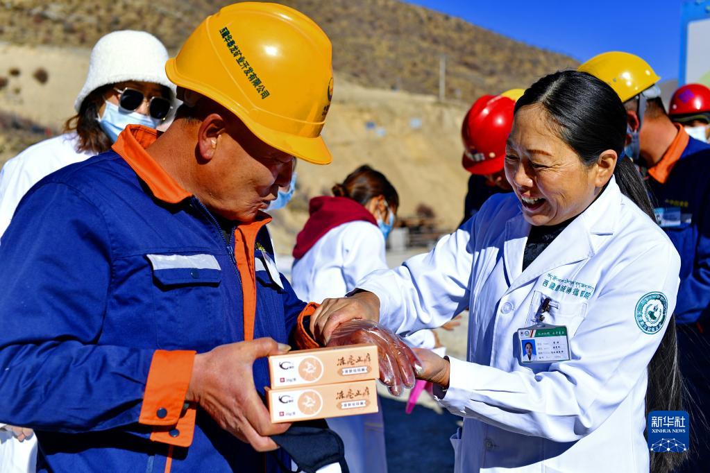當日,西藏康城腫瘤醫院的醫護人員來到拉薩市墨竹工卡縣,為(wei) 工地工人義(yi) 診,為(wei) 他們(men) 送去冬天裏的溫暖。