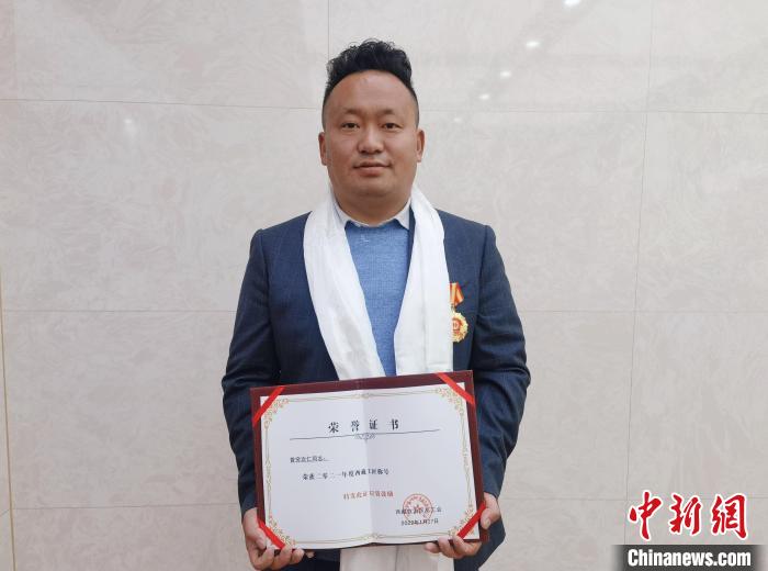 圖為(wei) 普窮次仁獲2021年度“西藏工匠”稱號 趙延 攝