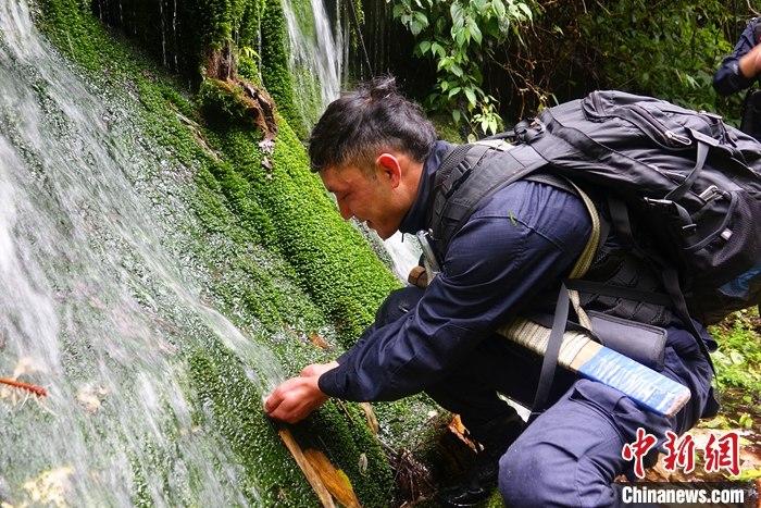西藏自治區墨脫縣背崩鄉(xiang) 的原始叢(cong) 林是戍邊民警日常巡邏之地。1月26日中午,中新社記者隨背崩邊境派出所民警一道,踏上了原始叢(cong) 林中的巡邏路。圖為(wei) 背崩邊境派出所輔警平措在溪流邊接水喝。 中新社記者 冉文娟 攝