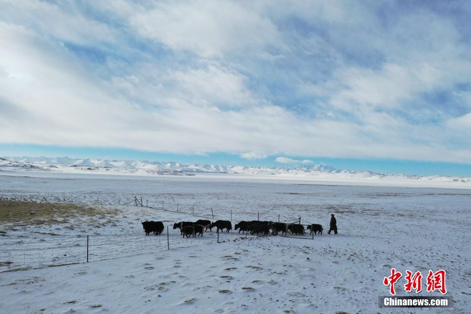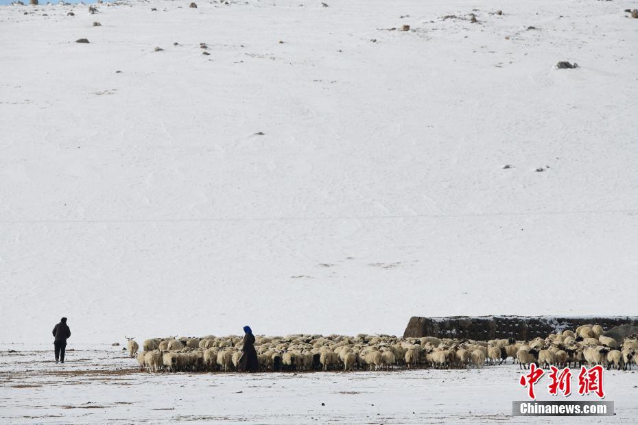 1月26日,牧民在納木錯湖邊放牧。雪後的西藏納木錯銀裝素裹,美景如畫。 中新社記者 貢嘎來鬆 攝