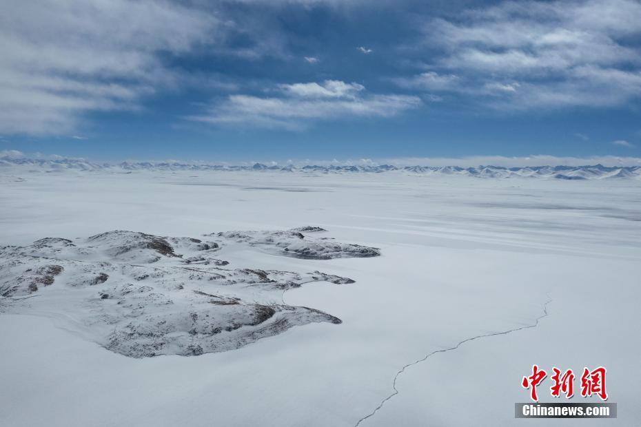 1月26日,納木錯雪景。雪後的西藏納木錯銀裝素裹,美景如畫。(無人機照片) 中新社記者 貢嘎來鬆 攝