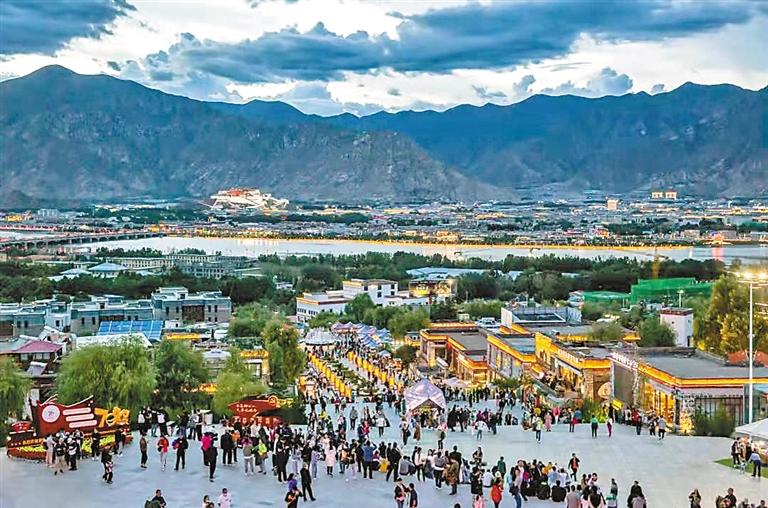 夜色漸濃,位於(yu) 拉薩河畔寶瓶山上的文成公主劇場,被成片的火燒雲(yun) 染成了耀眼的橙,熙攘人潮,暮色流光,劇場下方的慈覺林藏院風情街更是人潮湧動。近年來,隨著冬季旅遊政策的不斷推進,有效促進了西藏全季、全時旅遊的發展,而處於(yu) 夏季旅遊黃金時期的西藏旅遊則更加火爆。作為(wei) 西藏文化旅遊的靚麗(li) 名片,《文成公主》實景劇引來了更多遊客前來觀看。
