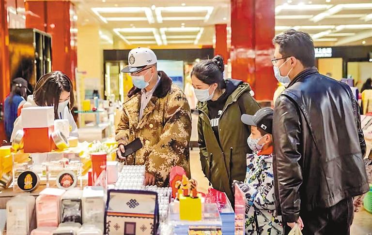 遊客在購買(mai) 《文成公主》係列文創產(chan) 品。