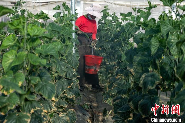 圖為(wei) 農(nong) 牧民采摘黃瓜。江飛波 攝