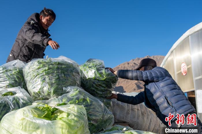 圖為(wei) 當地農(nong) 牧民轉運剛采摘的大棚蔬菜前往日喀則市區。江飛波 攝