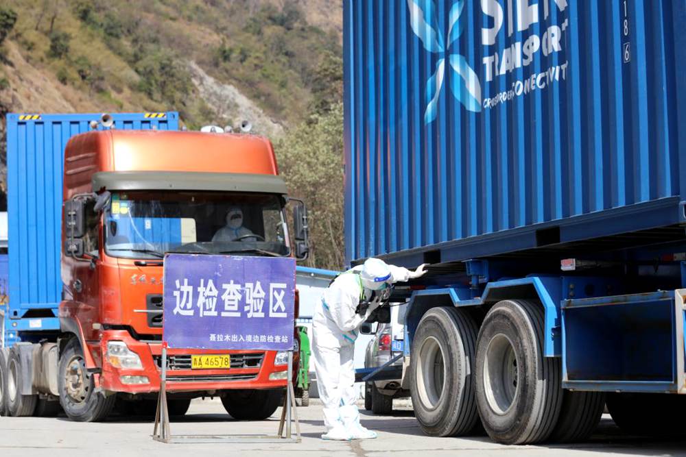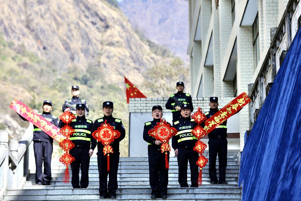 中尼友誼橋執勤點民警向全國人民拜年。索朗次仁攝