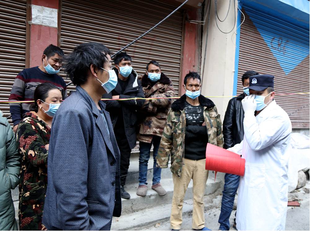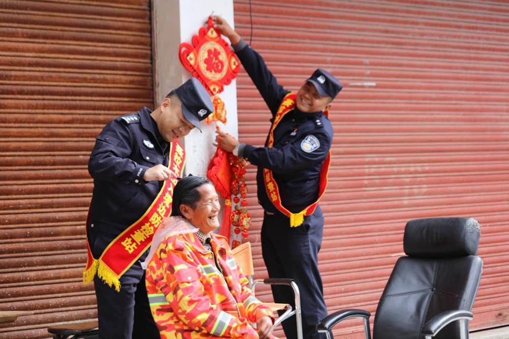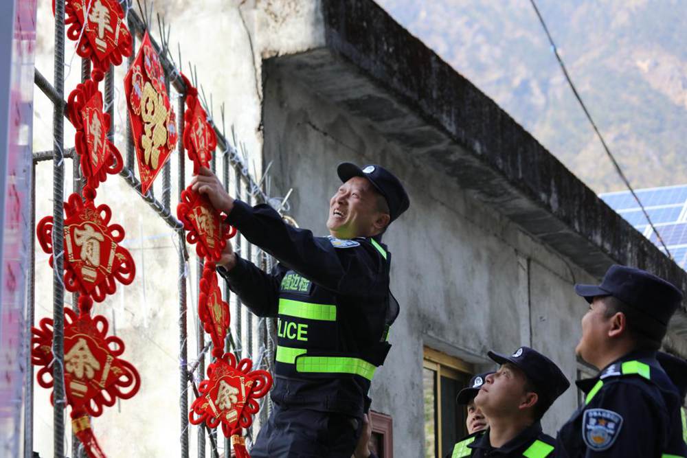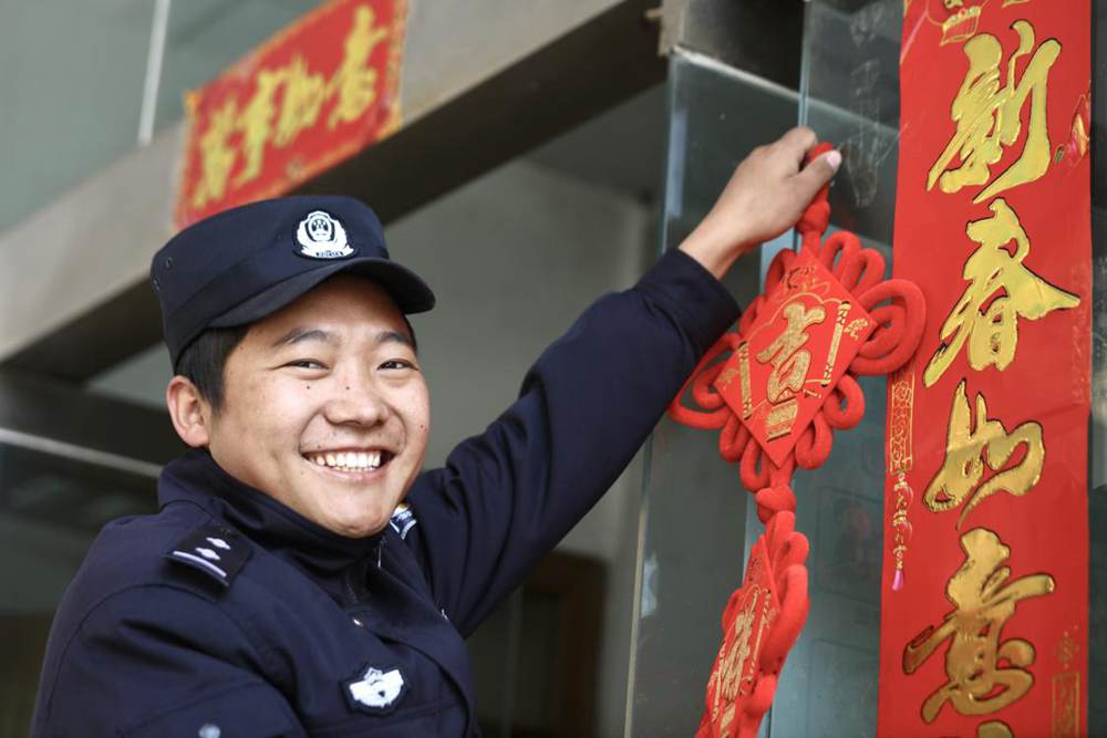 從(cong) 警20年的老民警掛福字。索朗次仁攝