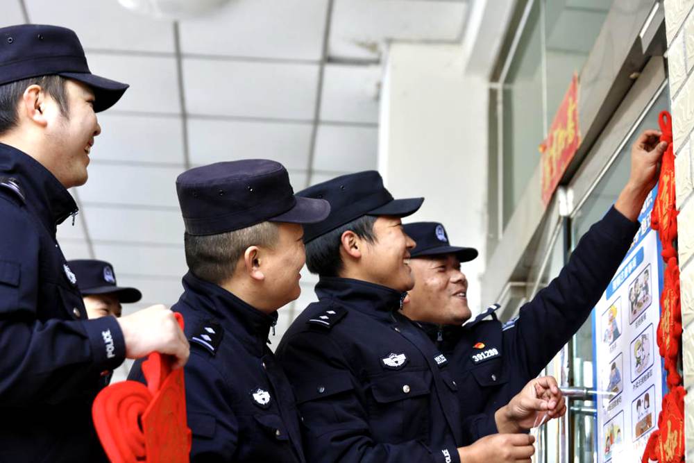 女警察拿著福字準備去裝扮宿舍過年。索朗次仁攝