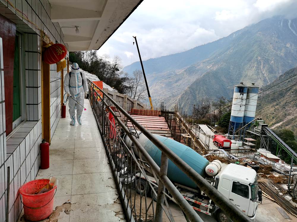 對施工區域及周邊環境進行全麵消殺。黃利平攝