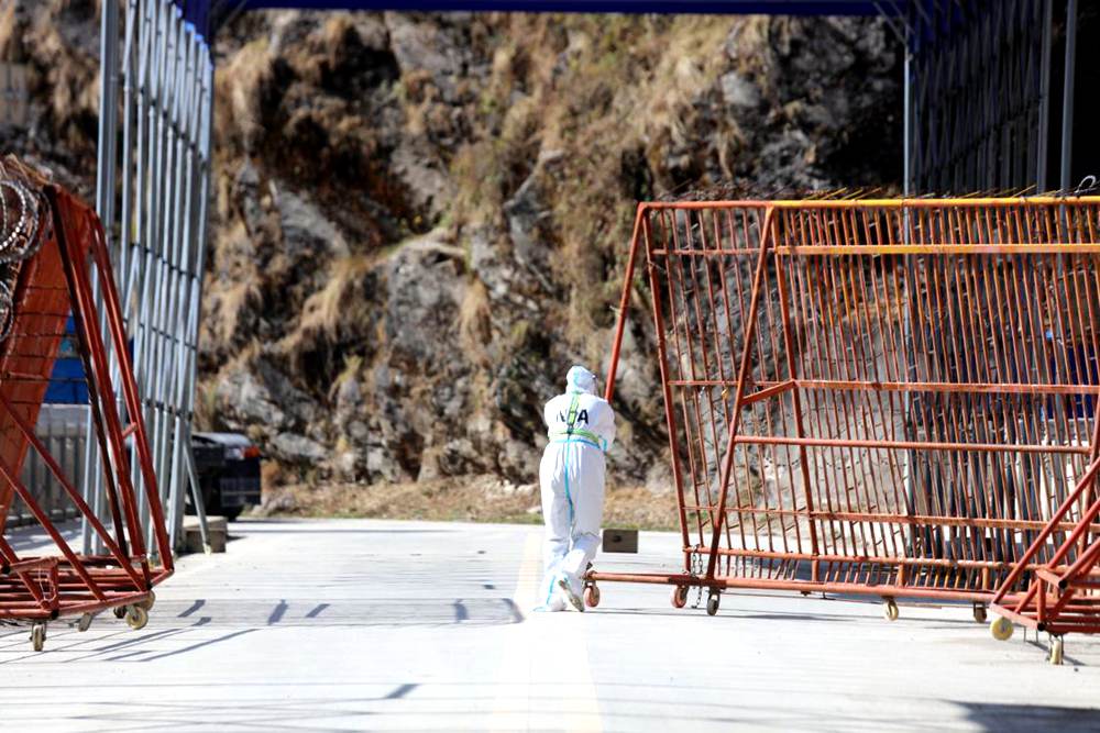 執勤點民警正在打開友誼橋阻攔門。索朗次仁攝