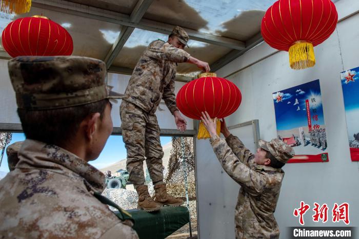 圖為(wei) 官兵裝點布置營區,營造春節氛圍。 王述東(dong) 攝