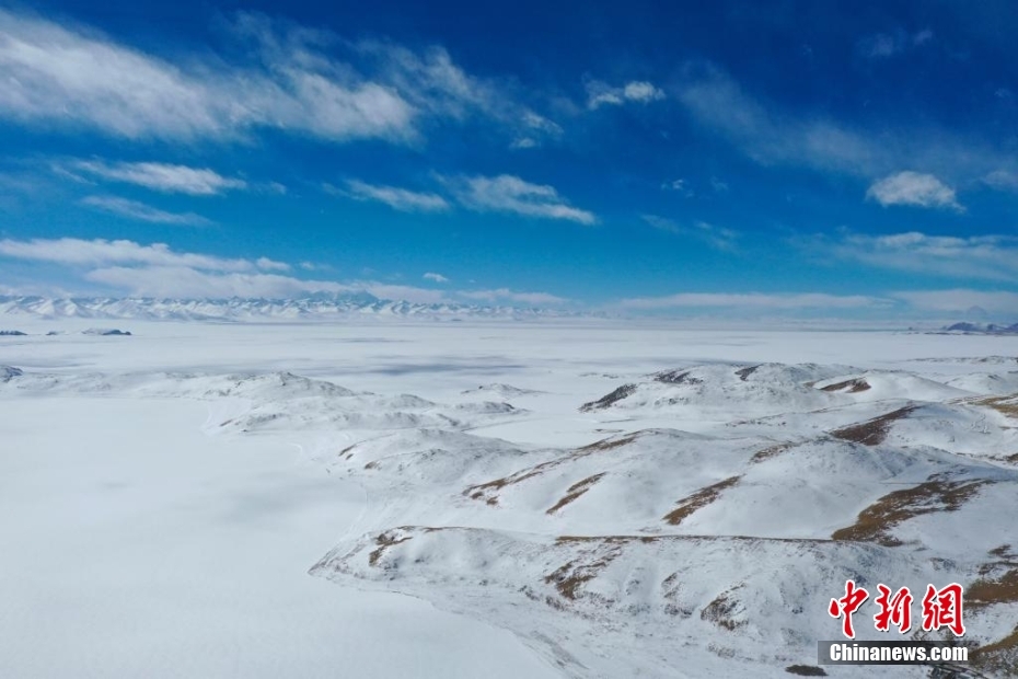 西藏納木錯湖迎降雪 遠山連綿酷似奶油冰激淩