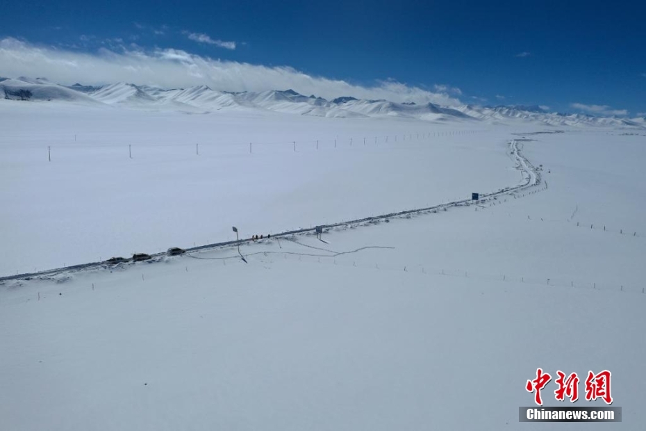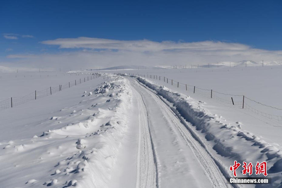 納木錯是西藏三大“聖湖”之一,近日迎來了降雪。藍色的冰湖與(yu) 廣闊的牧場都被茫茫白雪覆蓋。遠處連綿的山峰像極了奶油冰琪淩一般。牧場的欄杆,點綴出了草原的輪廓。貢嘎來鬆 攝