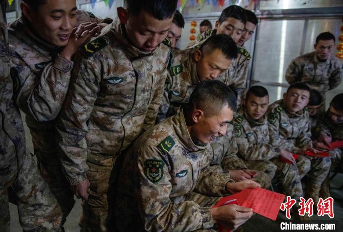聯歡的尾聲指導員夏邦國拿著最後的彩袋走到台前,把晚會(hui) 推向高潮,“兄弟們(men) ,這還有一大袋紅包,裏麵裝著的可是最珍貴的祝福”。官兵們(men) 用抽盲盒的形式拆開新年的“紅包”。中士趙路寬抽到一個(ge) 最鼓的,打開是滿滿的糖果;下士吳兵拆開的是一個(ge) 帶有小機關(guan) 的新年賀卡;下士鄧雲(yun) 川拆到一封遠方的匿名信,“雖不曾相見與(yu) 相識,但知道是你們(men) 在默默堅守付出,守衛著祖國的雪域邊防”。伴隨著他磕絆的普通話,連隊官兵漸漸安靜下來。“邊關(guan) 有我,請祖國和人民放心”,簡易投影的大屏上開始播放著官兵們(men) 一年多來頂風冒雪,戰天鬥地的光影片段,在這大山裏的多少的苦累酸甜,都已經鐫刻在茫茫雪域。