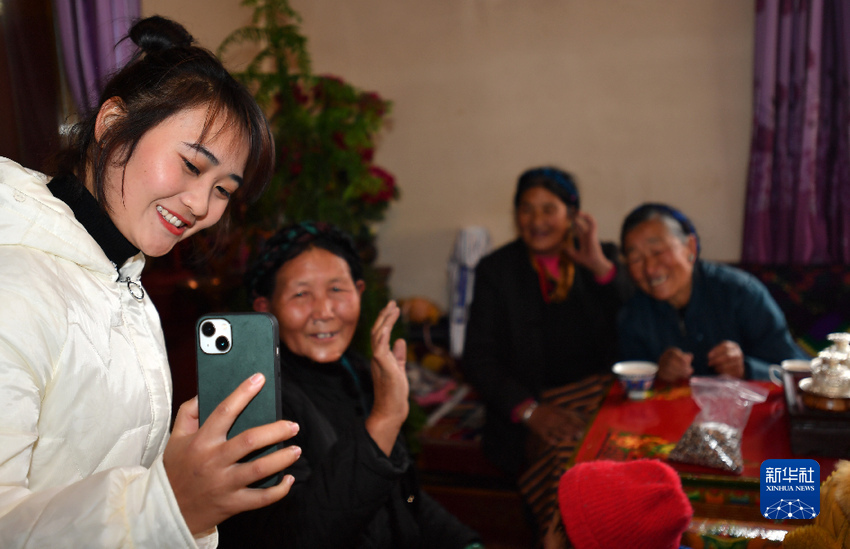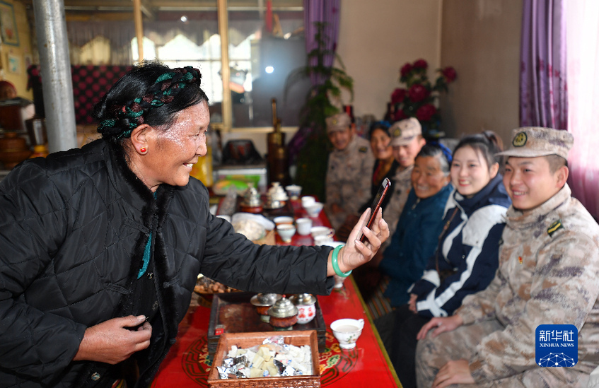 雲(yun) 南省楚雄彝族自治州的軍(jun) 屬普曉虹寒假期間跟隨官兵到三位老阿媽家裏走訪,她在和雲(yun) 南老家父母視頻通話時說:“爸媽,我在西藏有了三個(ge) 阿媽!”(1月26日攝)。新華社記者 覺果 攝
