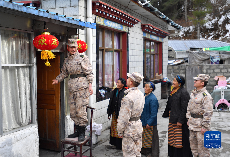 當地官兵到仁青崗村為(wei) 三位老阿媽裝點房屋,準備迎接春節(1月26日攝)。新華社記者 覺果 攝