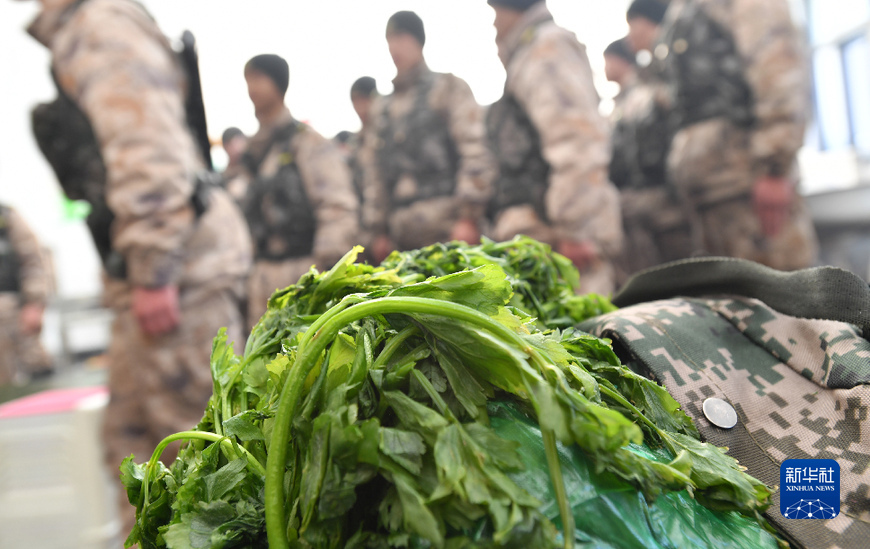 這是老阿媽送達哨所的綠色蔬菜(1月27日)。新華社記者 覺果 攝