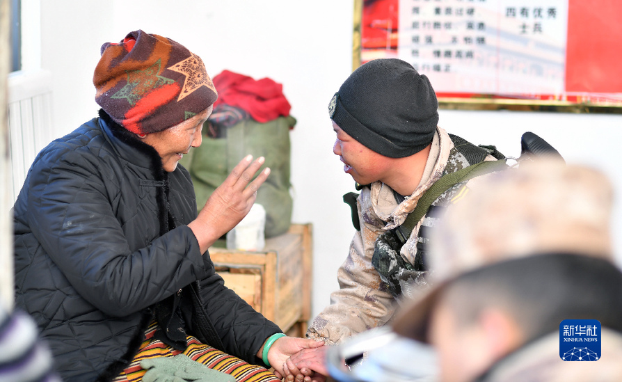 老阿媽達吉在和戰士聊家常(1月27日攝)。新華社記者 覺果 攝