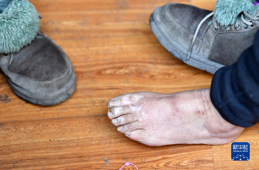 達吉阿媽的身上,如今仍留有送菜時的凍傷(shang) (1月26日攝)。新華社記者 覺果 攝