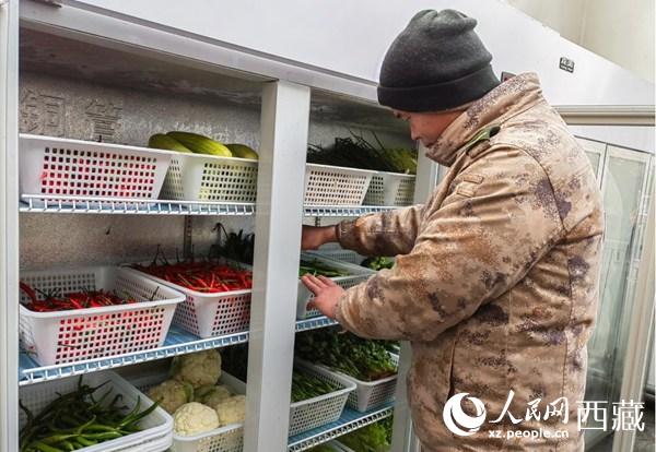 哨所裏有了保鮮櫃,新鮮蔬菜隨時供應。人民網 李海霞攝