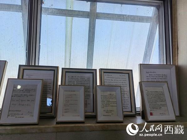 在哨所,最引人注目的是一封封被精心裝裱起來的信。落款都是:詹娘舍哨所全體(ti) 官兵(收)。