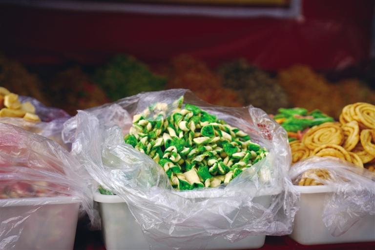 連日來,拉薩市區內(nei) 的眾(zhong) 多店鋪換裝成“卡賽”店。記者走進城中的一家店鋪,店內(nei) 擺滿了精美的“卡賽”。另一旁,工作人員各自分工,有的正在將切割、染色好的麵片捏成不同樣式,有的正在將做好形狀的麵團放到鍋裏。