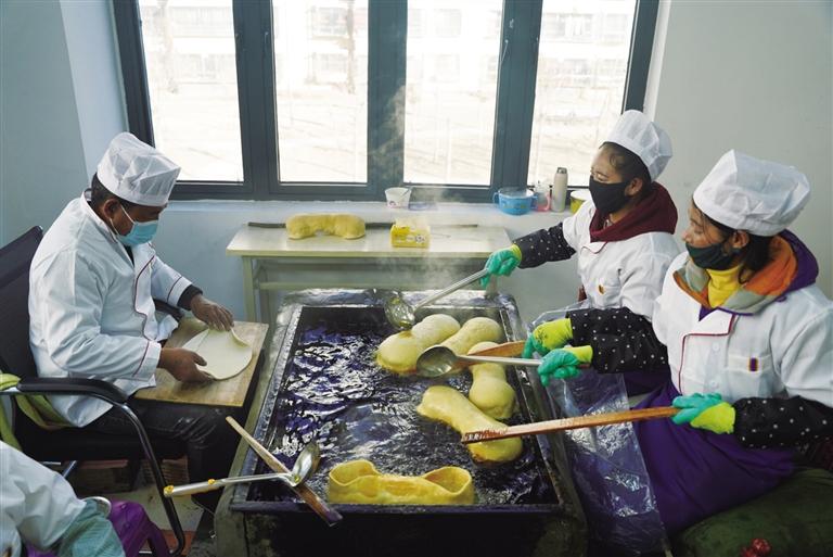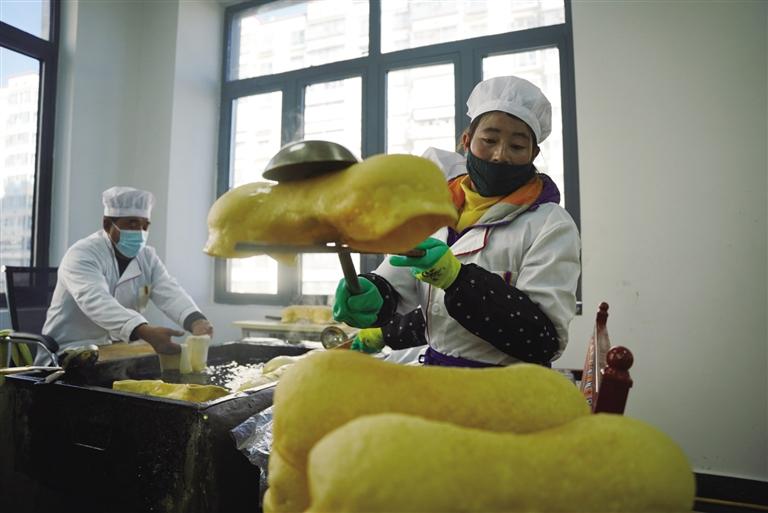為(wei) 了保證“德卡”與(yu) “卡賽”的品質,恩惠苑社區還提前聯係拉薩市墨竹工卡縣訂購麵粉與(yu) 食用油,確保原材料的安全與(yu) 口感。“為(wei) 了增加銷量,我們(men) 提前對接了一些社區居委會(hui) 和商戶,並低價(jia) 對內(nei) 銷售,讓我們(men) 社區的搬遷群眾(zhong) 也能夠低價(jia) 購買(mai) 到年貨。”次仁巴珠說。