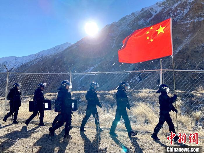 圖為(wei) 普蘭(lan) 邊檢站民警在邊境國門巡邏。 格熱 攝